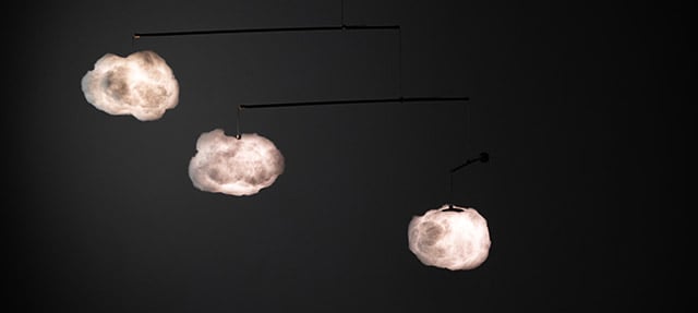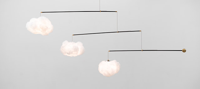 Cloud Mobile is the culmination of two of our products the Lampshade Cloud and Mobile. Inspired by Alexander Calder's mobile artworks this lamp uses dynamic movement as a design material.