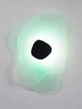 Drawing from a palette of delicate greens, fuchsias and blues, we sought to mimic the elegant melange of colors emitted by aurora. We juxtapose these translucent colors with opaque blacks, and clouded resin panels.