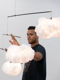 Cloud Mobile is the culmination of two of our products the Lampshade Cloud and Mobile. Inspired by Alexander Calder's mobile artworks this lamp uses dynamic movement as a design material.